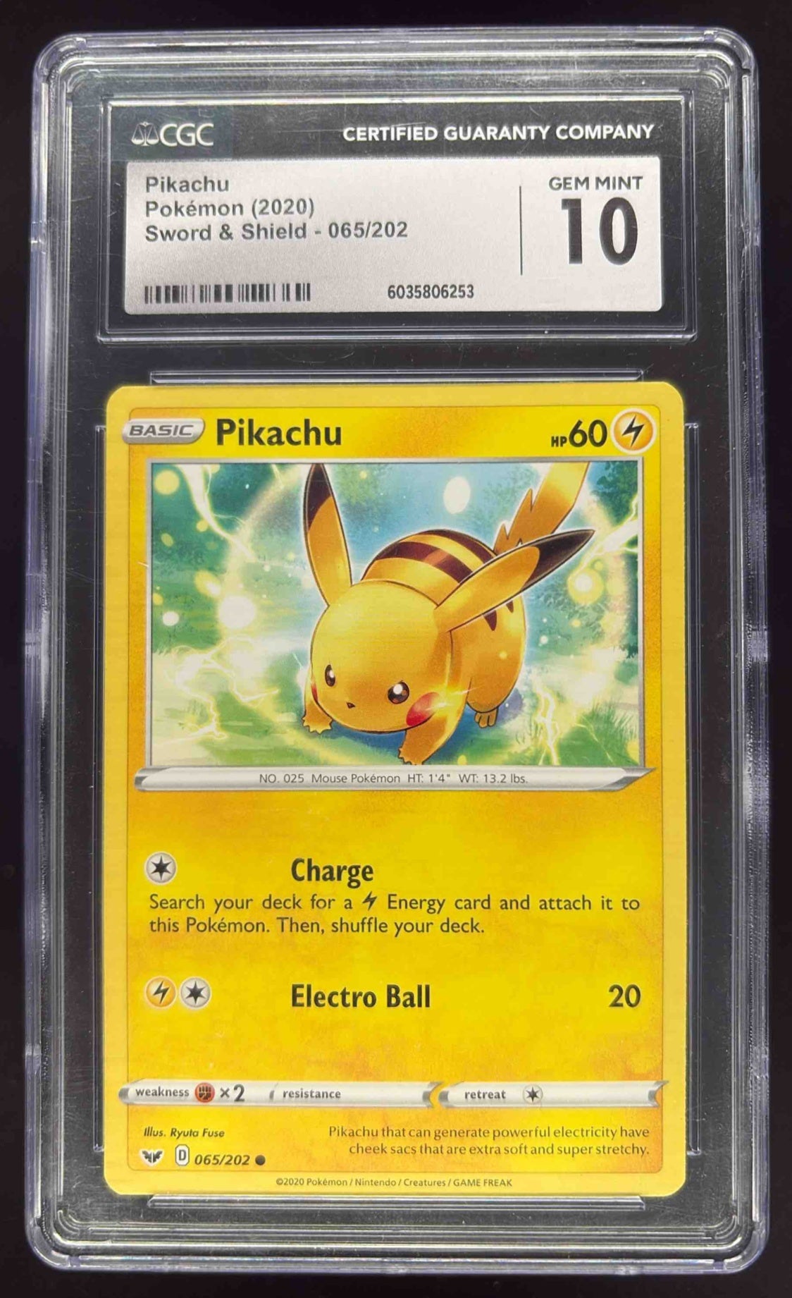 2020 Pokemon Sword & Shield #065/202 Pikachu CGC 10