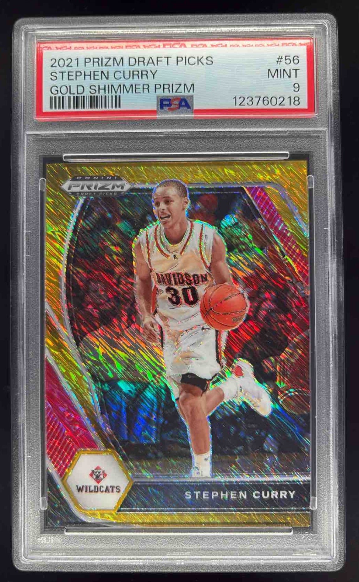 2021-22 Panini Prizm Draft Picks Gold Shimmer Prizm #56 Stephen Curry /10 PSA 9