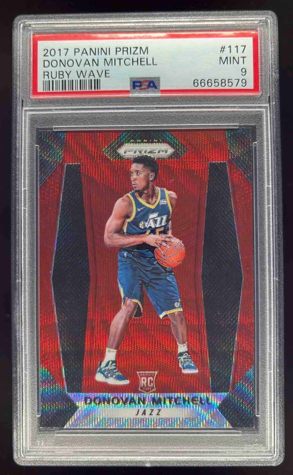 2017-18 Panini Prizm Prizms Ruby Wave #117 Donovan Mitchell RC PSA 9