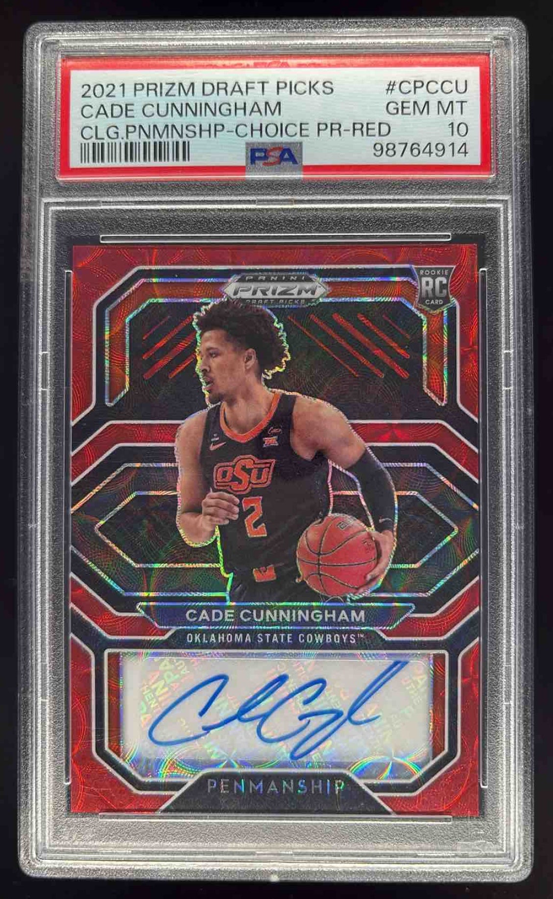 2021 Prizm College Penmanship Choice Red Cade Cunningham RC Auto /88 PSA 10