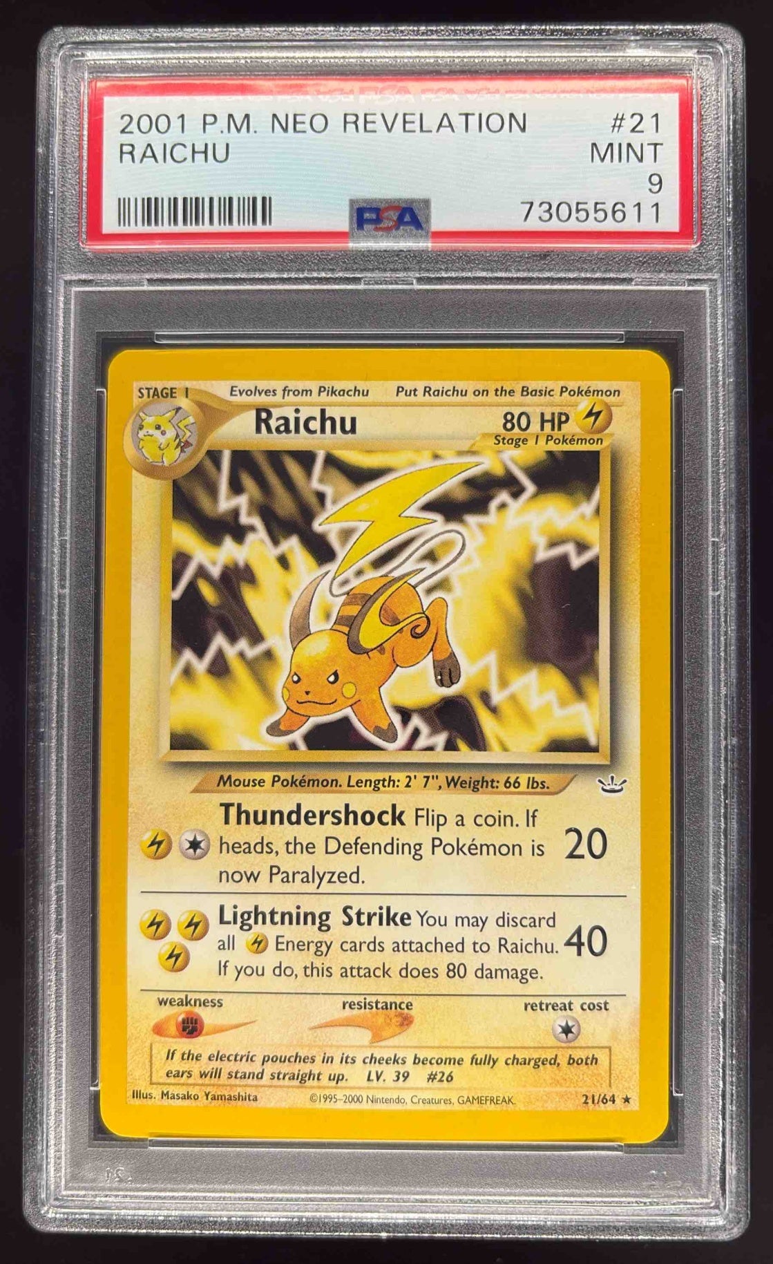 2001 Pokemon Neo Revelation #21/64 Raichu PSA 9