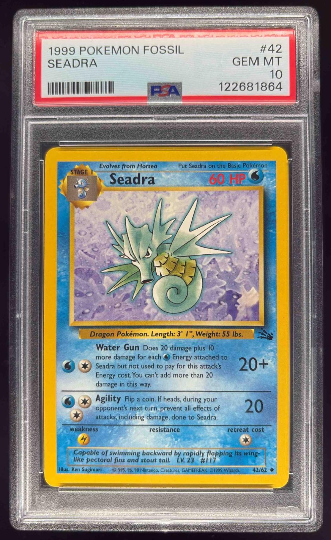 1999 Pokemon Fossil #42/62 Seadra PSA 10