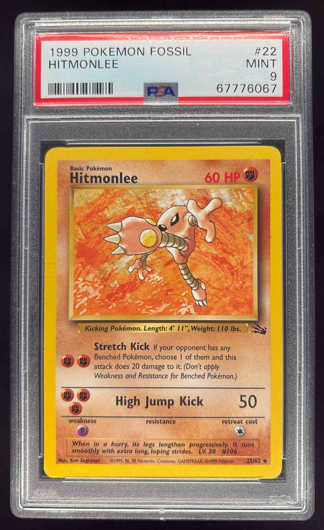 1999 Pokemon Fossil #22/62 Hitmonlee PSA 9