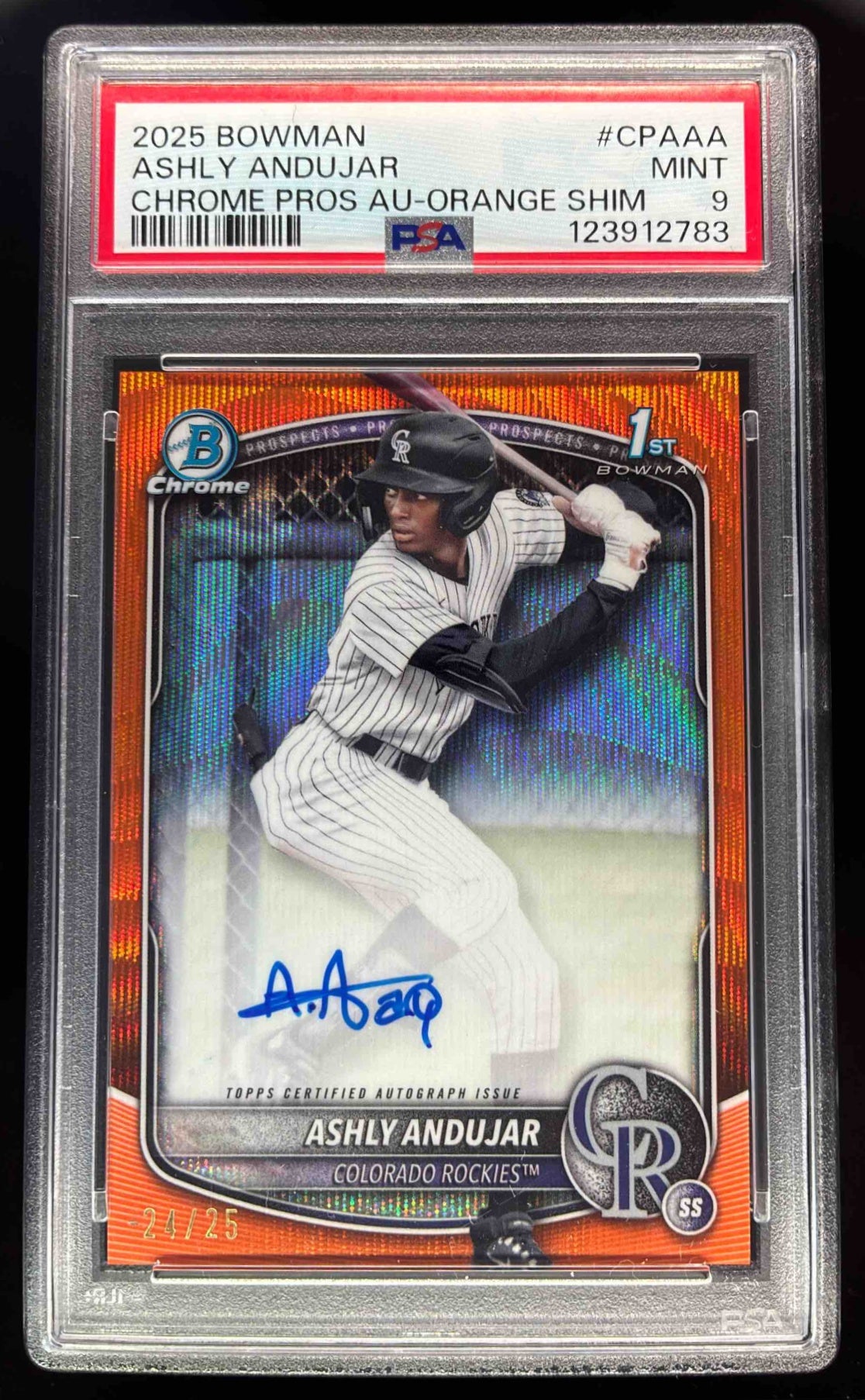 2025 Bowman Chrome Orange Shimmer #CPA-AA Ashly Andujar RC Auto /25 PSA 9