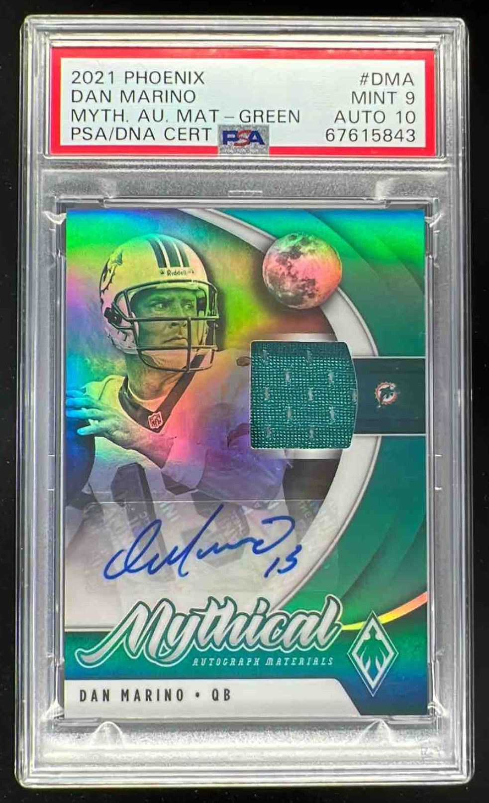 2021 Panini Phoenix Mythical Autograph Materials Green Dan Marino Auto /10 PSA 9