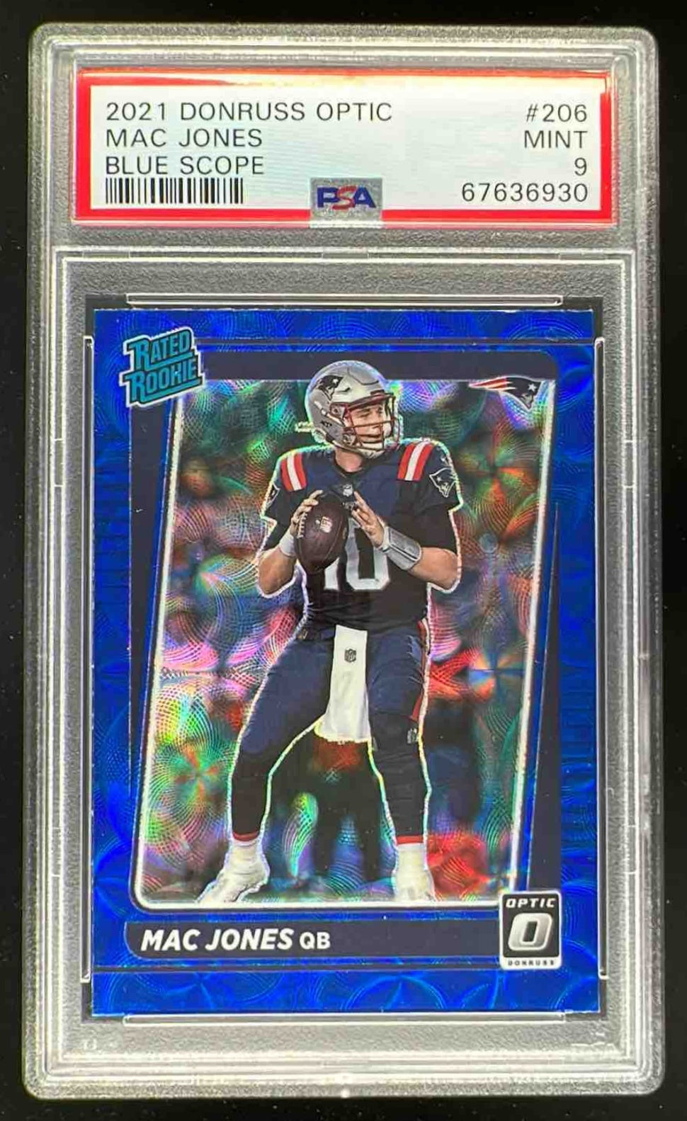 2021 Panini Donruss Optic Blue Scope #206 Mac Jones RC Rated Rookie PSA 9