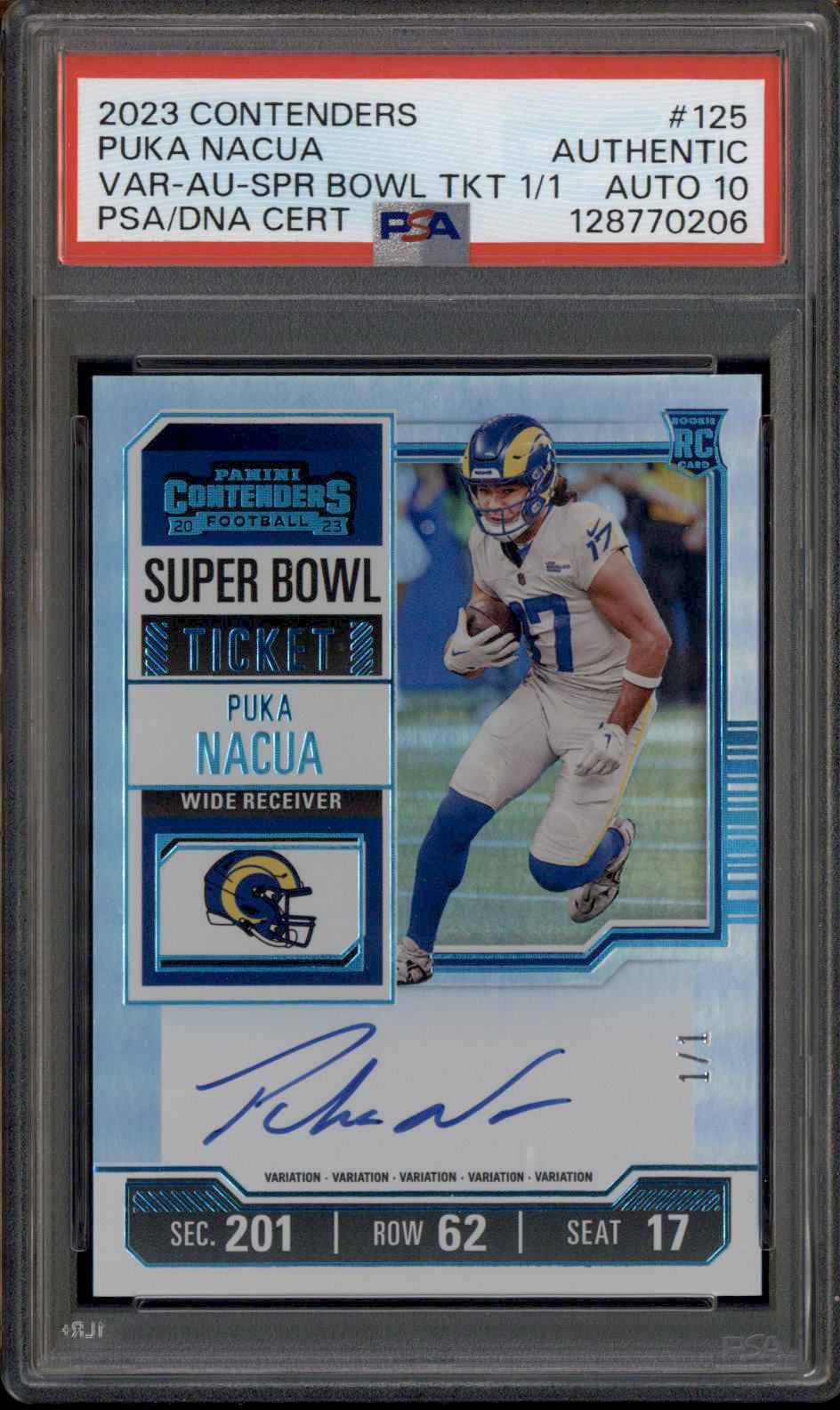 2023 Contenders Variation Super Bowl #125 Puka Nacua RC Auto 1/1 PSA Authentic