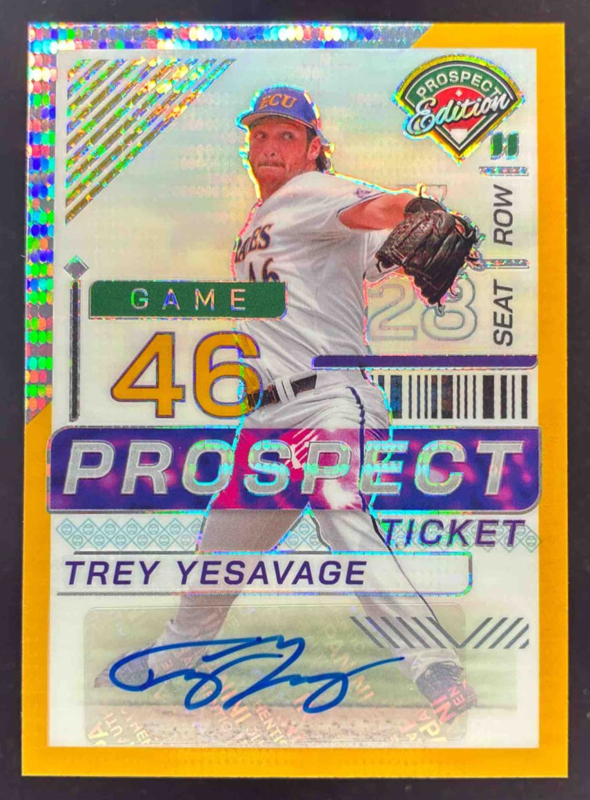 2024 Panini Edition Holo Prospect Ticket Gold Pulsar Trey Yesavage Auto /10