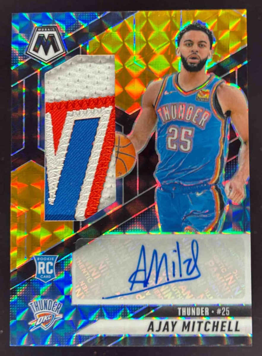2024-25 Panini Mosaic Rookie Jersey Choice Black Gold Ajay Mitchell Auto /8