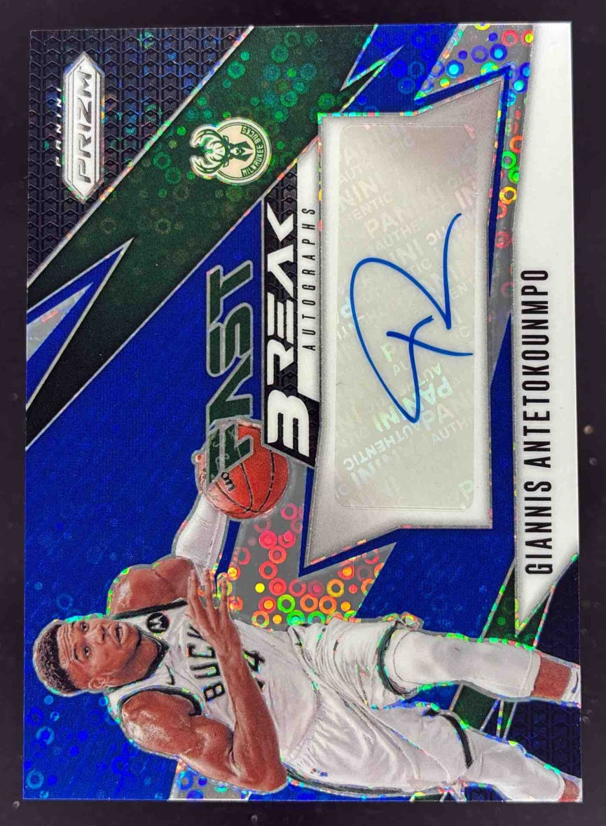 2024-25 Panini Prizm Fast Break Autographs Blue Giannis Antetokounmpo Auto /49