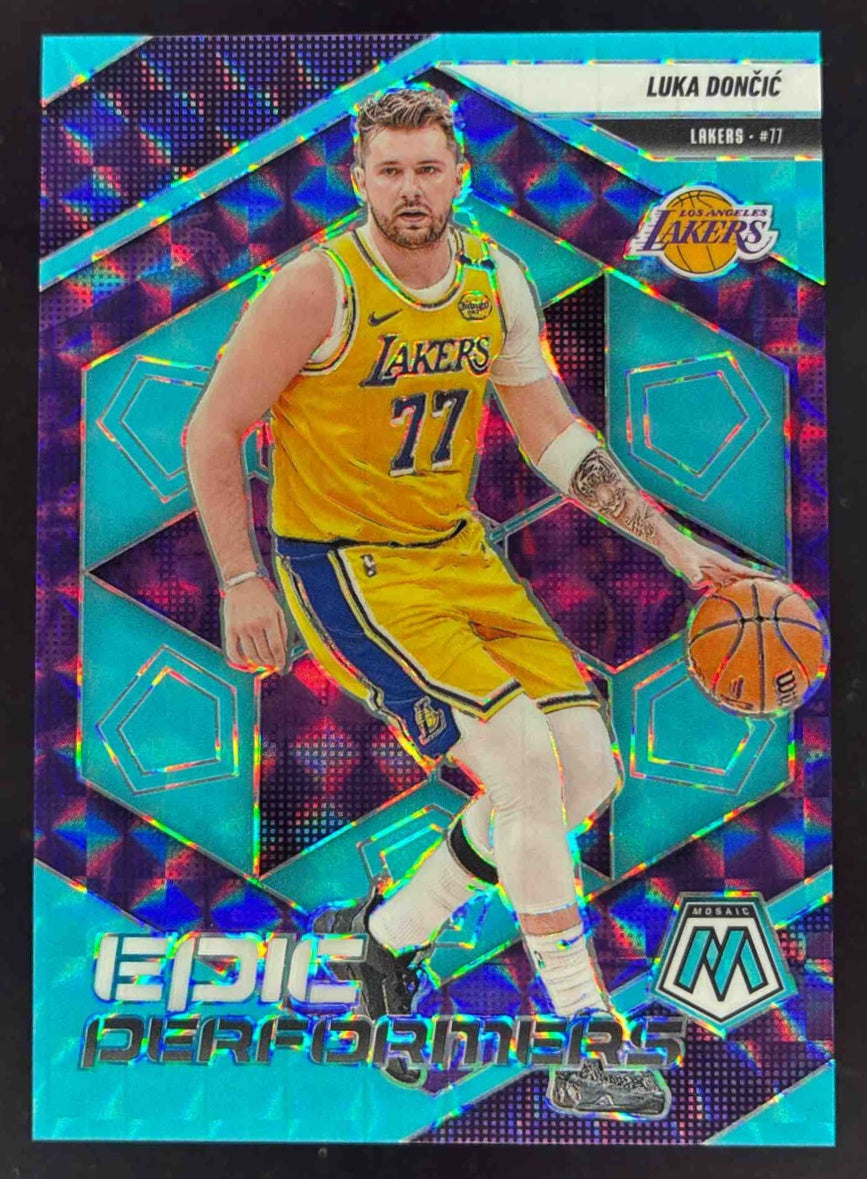 2024-25 Panini Mosaic Epic Performers Blue Fluorescent Mosaic Luka Doncic /30
