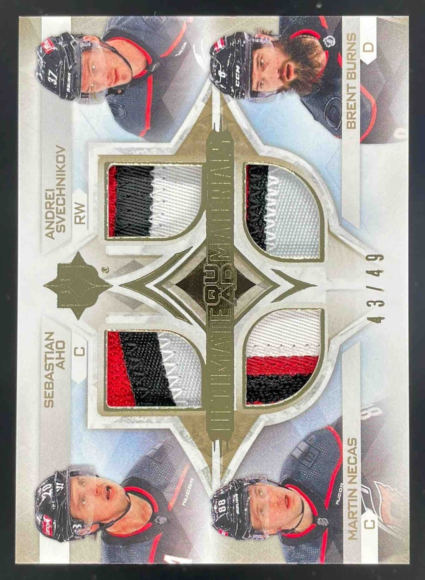 2023 Ultimate Collection Quad Material Gold Patch Aho Svechnikov Necas Burns /49