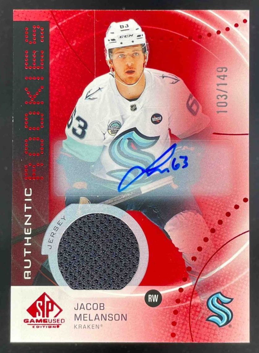 2025 SP Game Used Authentic Relic Red Auto Jersey Jacob Melanson RC Auto /149