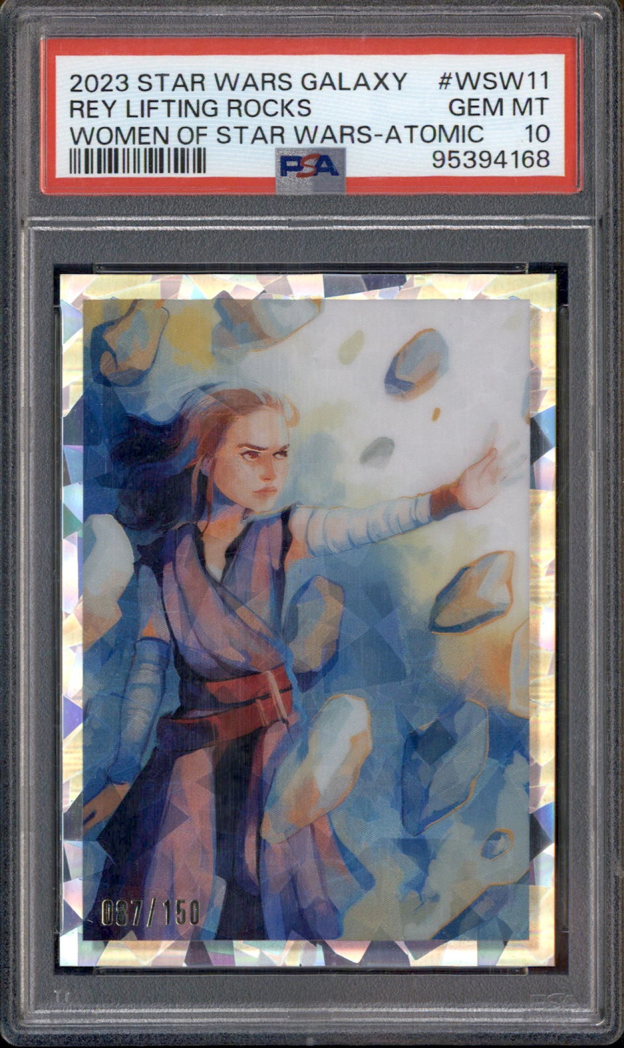 2023 Topps Chrome Star Wars Galaxy Atomic Rey Lifting Rocks Jedi /150 PSA 10
