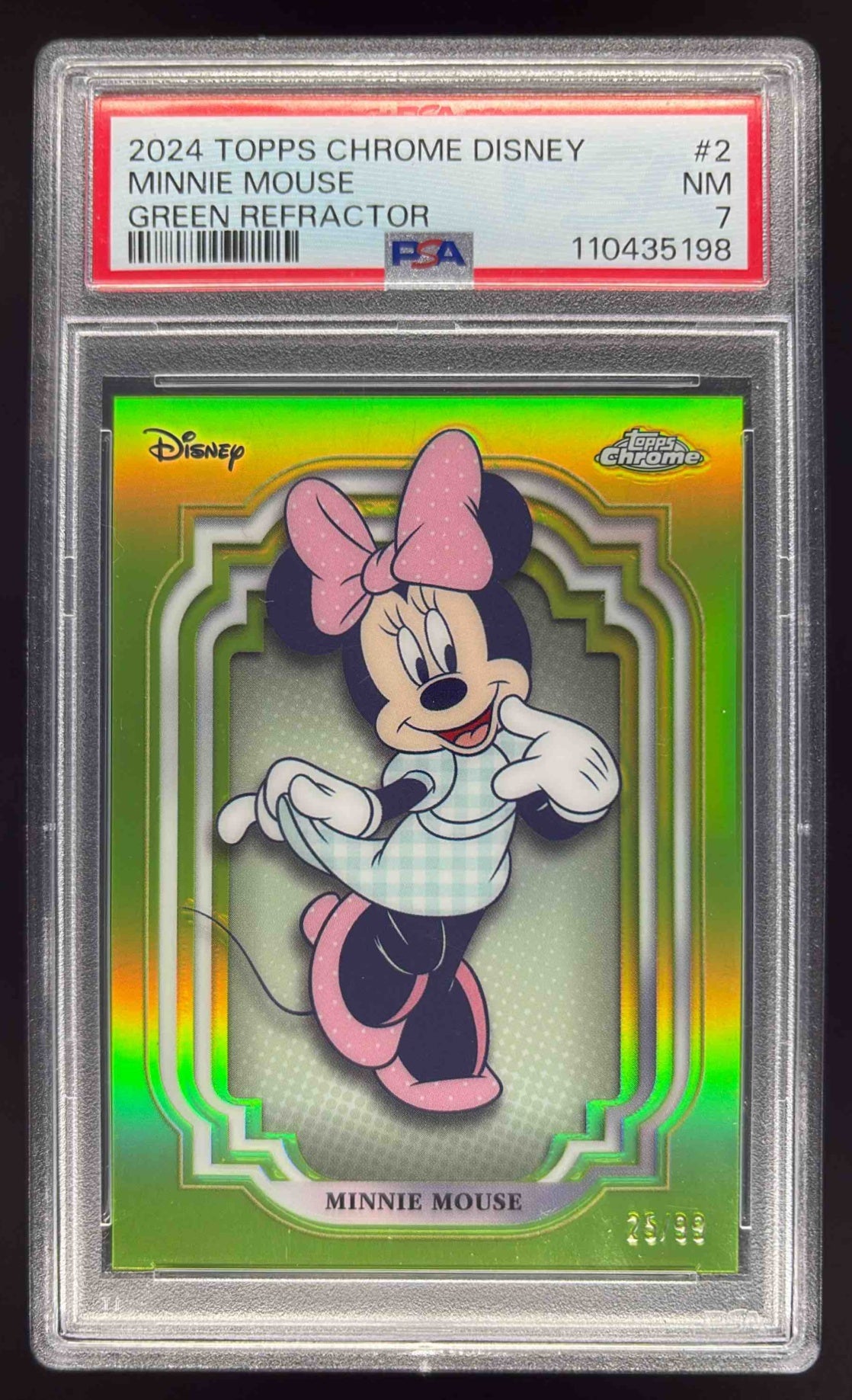 2024 Topps Chrome Disney Green Refractor #2 Minnie Mouse /99 PSA 7