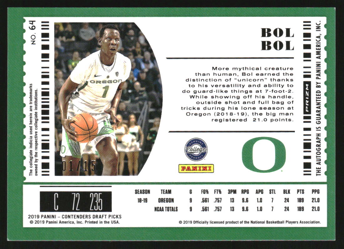 2019-20 Panini Contenders Optic College Ticket Auto Mojo Bol Bol RC /15