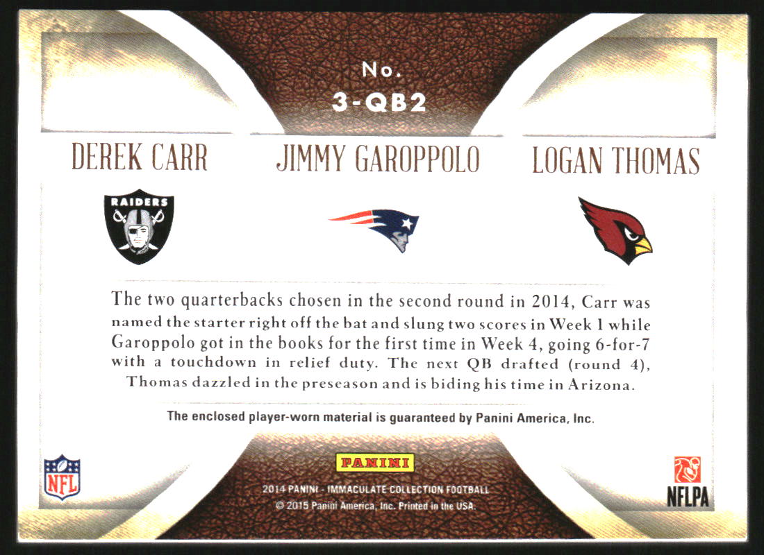 2014 Immaculate Collection Trios Jersey Jimmy Garoppolo Derek Carr Thomas /25