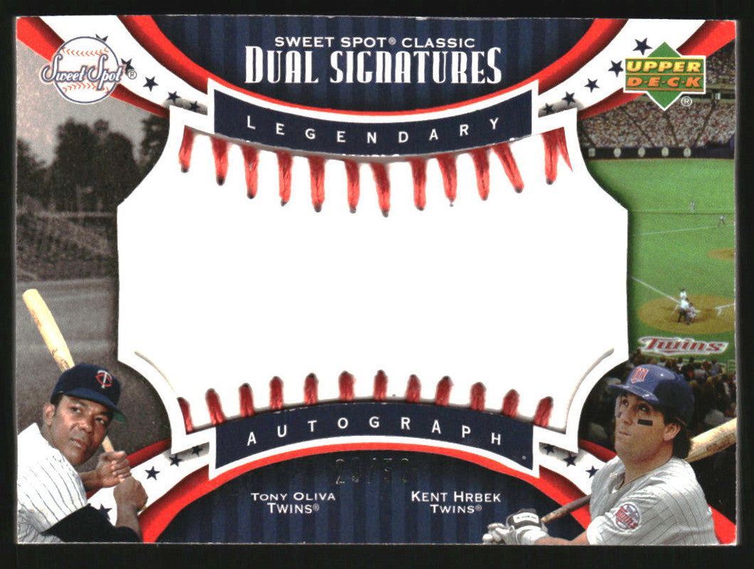 2007 Sweet Spot Classic Dual Auto Red Stitch Blue Ink Tony Oliva Kent Hrbek /50