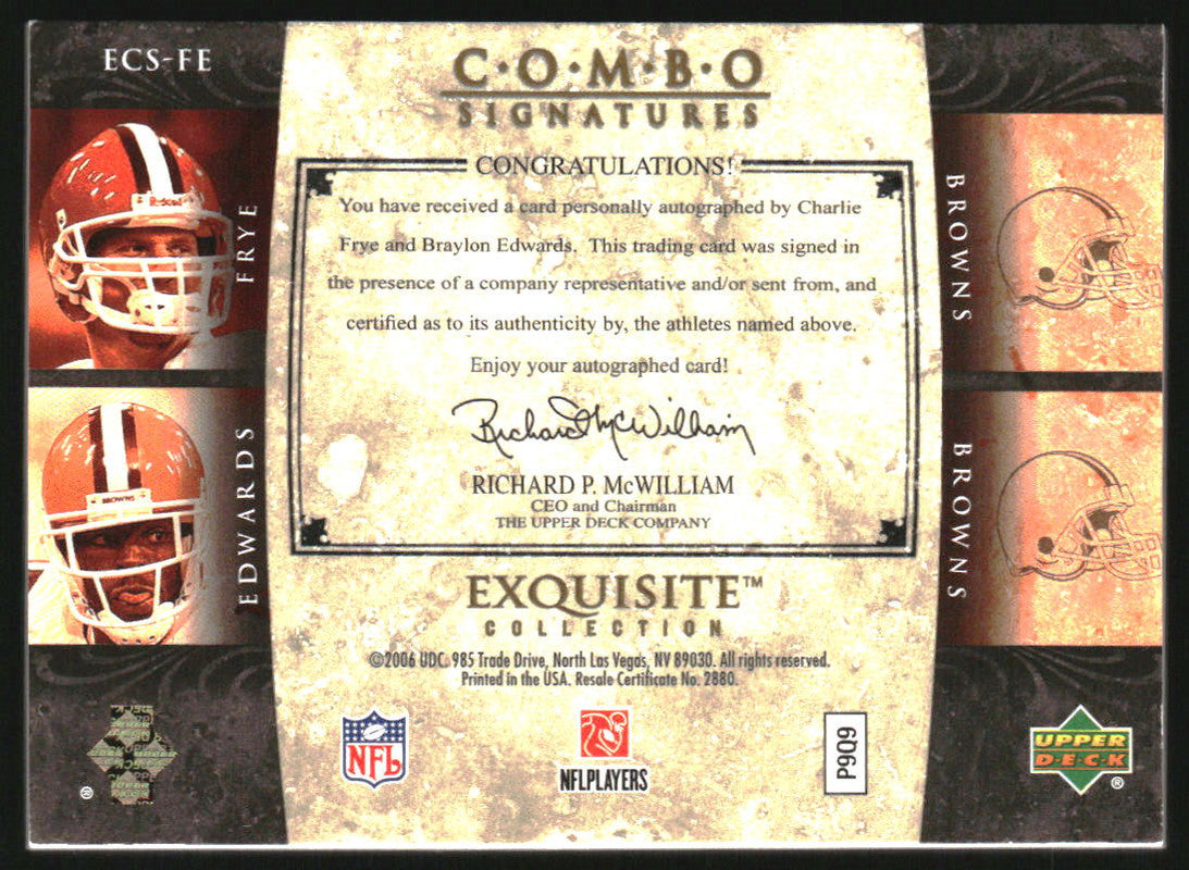 2006 Exquisite Collection Signature Dual Auto Charlie Frye Braylon Edwards /20