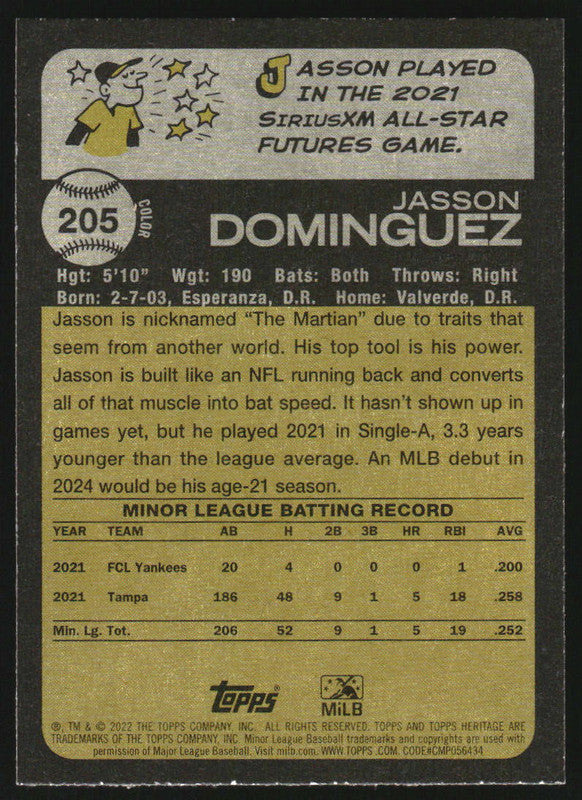 2022 Topps Heritage Minors Color Variations #205 Jasson Dominguez