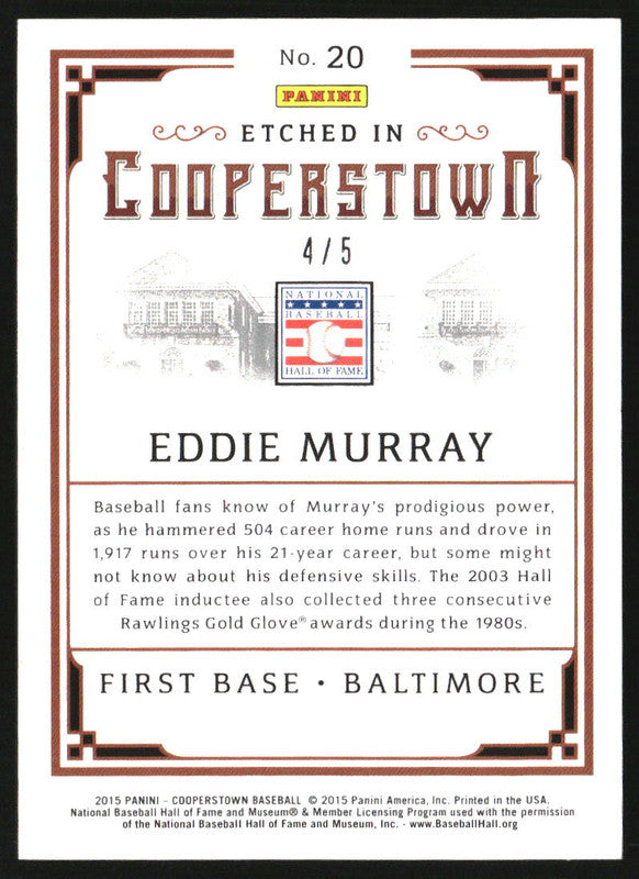 2015 Panini Cooperstown Etched in Cooperstown Holo Gold #20 Eddie Murray /5