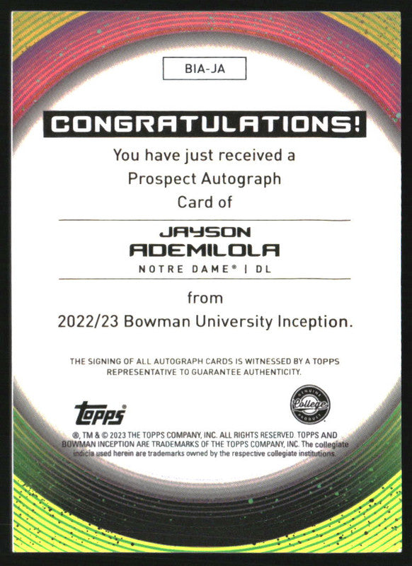 2022-23 Bowman Inception University Auto Gold Foil V1 Jayson Ademilola /50