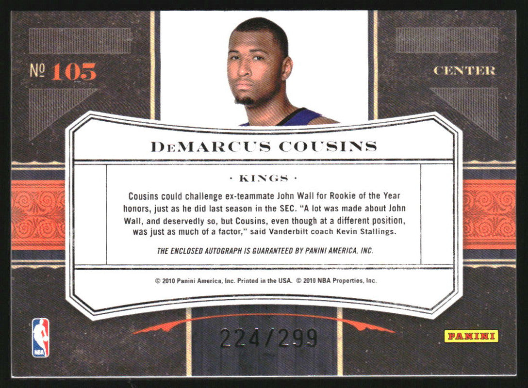 2010-11 Timeless Treasures #105 DeMarcus Cousins Rookie Autograph RC Auto /299