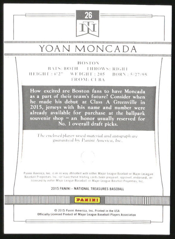 2015 Panini National Treasures Prospect Silhouette Auto Yoan Moncada /99