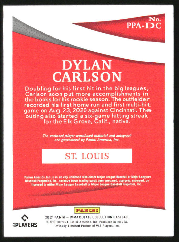 2021 Immaculate Collection Premium Patch Auto Black Dylan Carlson RC /10
