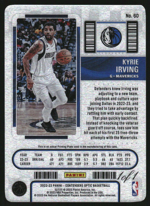 2022-23 Contenders Optic Printing Plate Yellow #60 Kyrie Irving 1/1