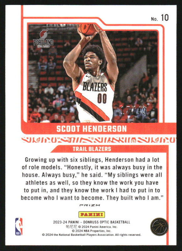 2023-24 Donruss Optic Elite Dominators Blue #10 Scoot Henderson RC /49