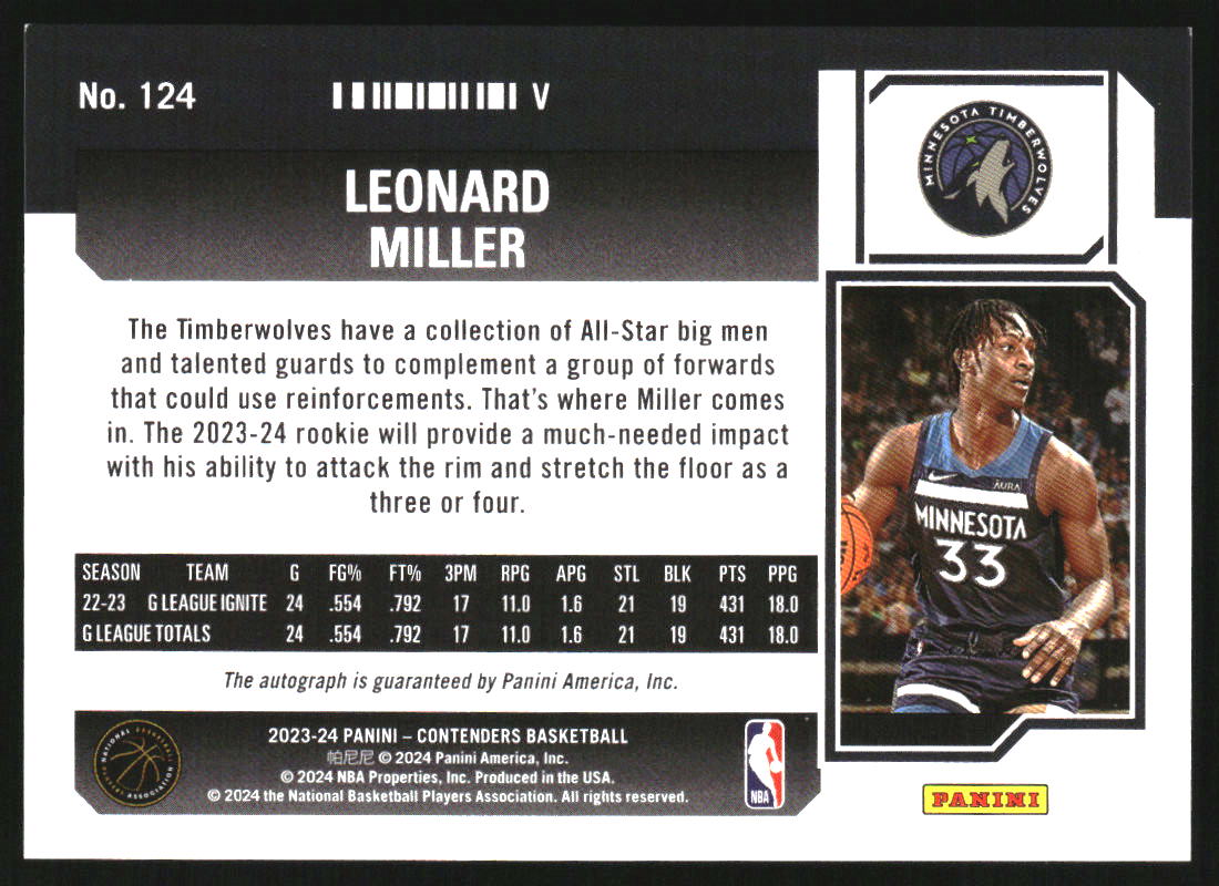 2023 Panini Contenders Variations The Finals Ticket Leonard Miller RC Auto /49
