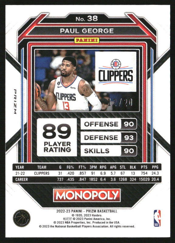 2022-23 Panini Prizm Monopoly Green Money Shimmer #38 Paul George /20