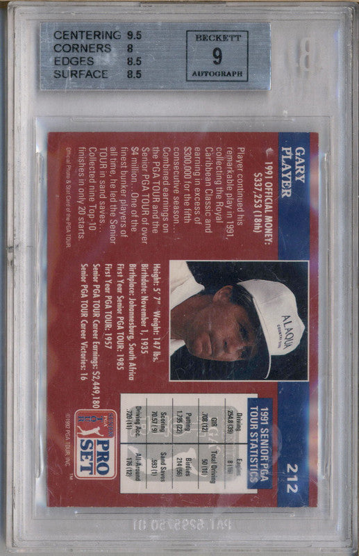 1992 Pro Set #212 Gary Player Autograph Auto BGS 8.5