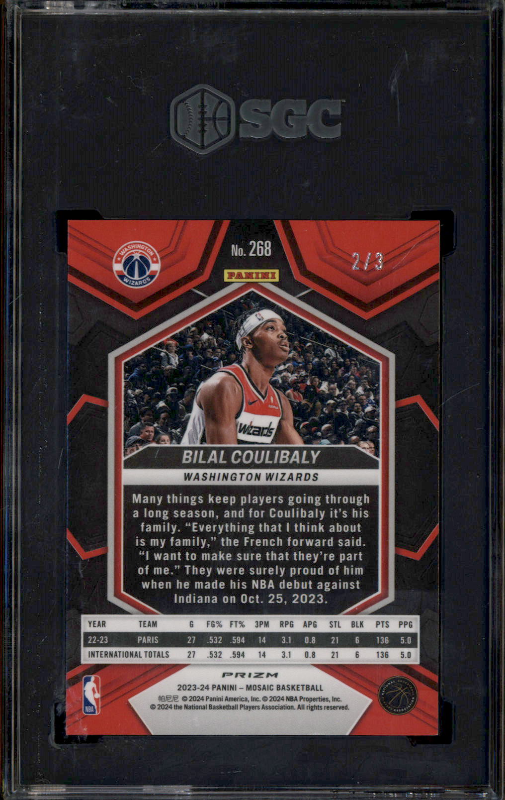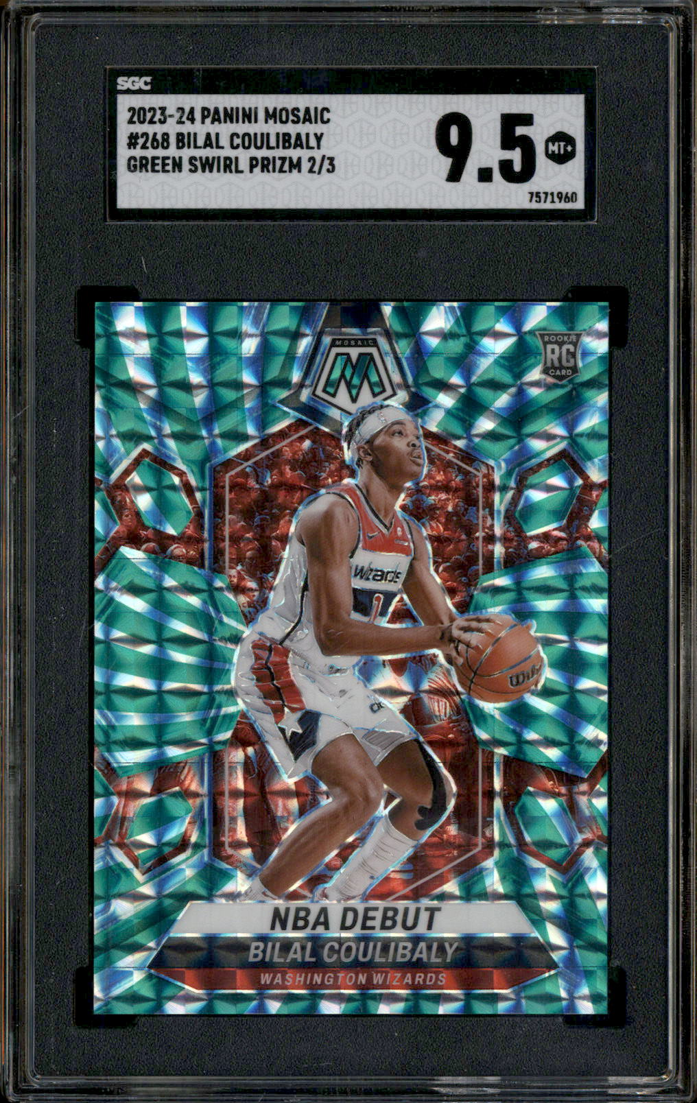 2023 Panini Mosaic Green Swirl Prizm #268 Bilal Coulibaly RC Rookie /3 SGC 9.5
