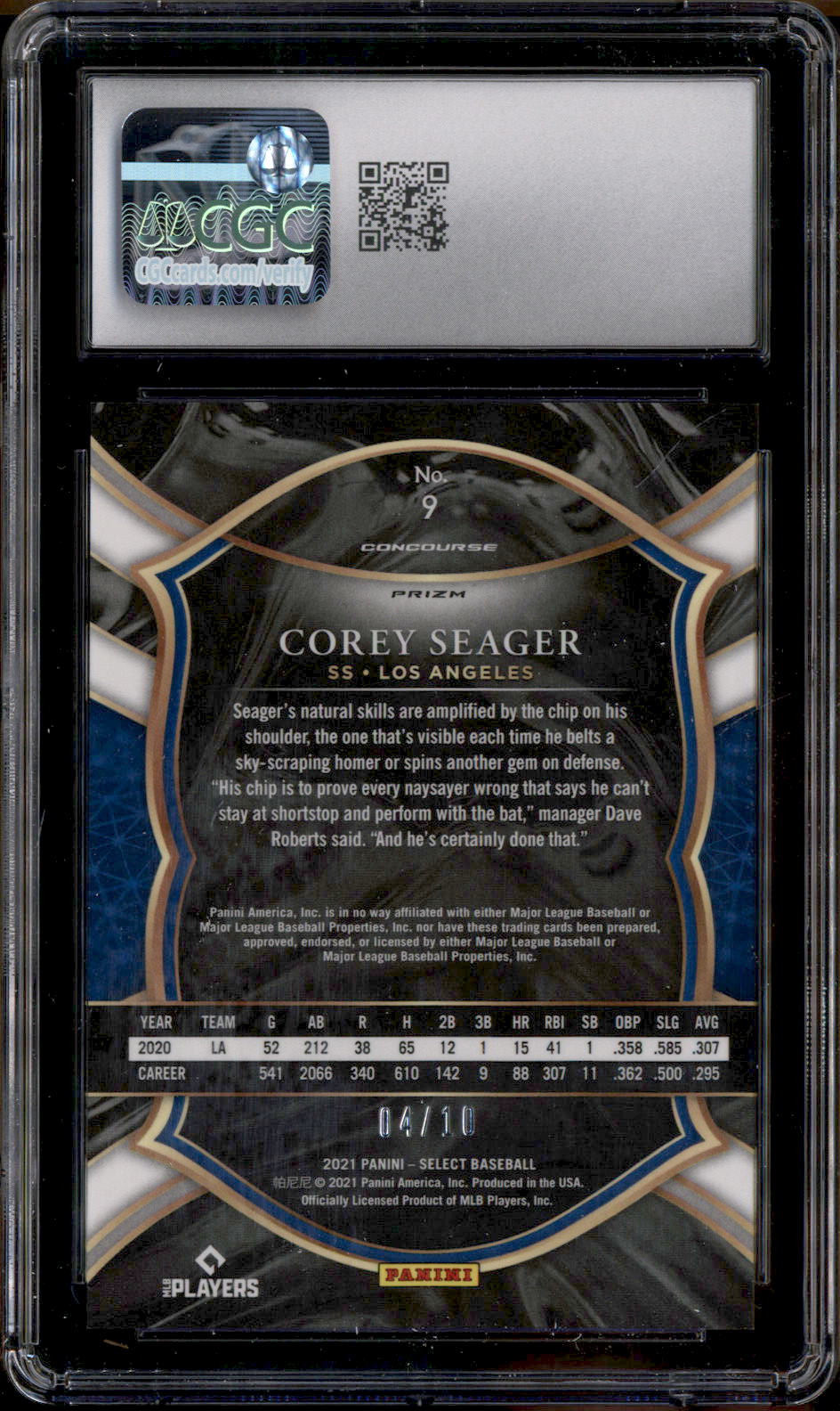 2021 Panini Select Gold Disco #9 Corey Seager /10 CGC 10