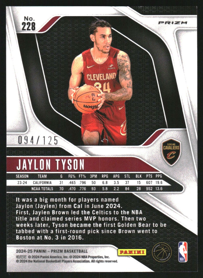 2024-25 Panini Prizm Prizms Blue Ice #228 Jaylon Tyson RC Rookie /125