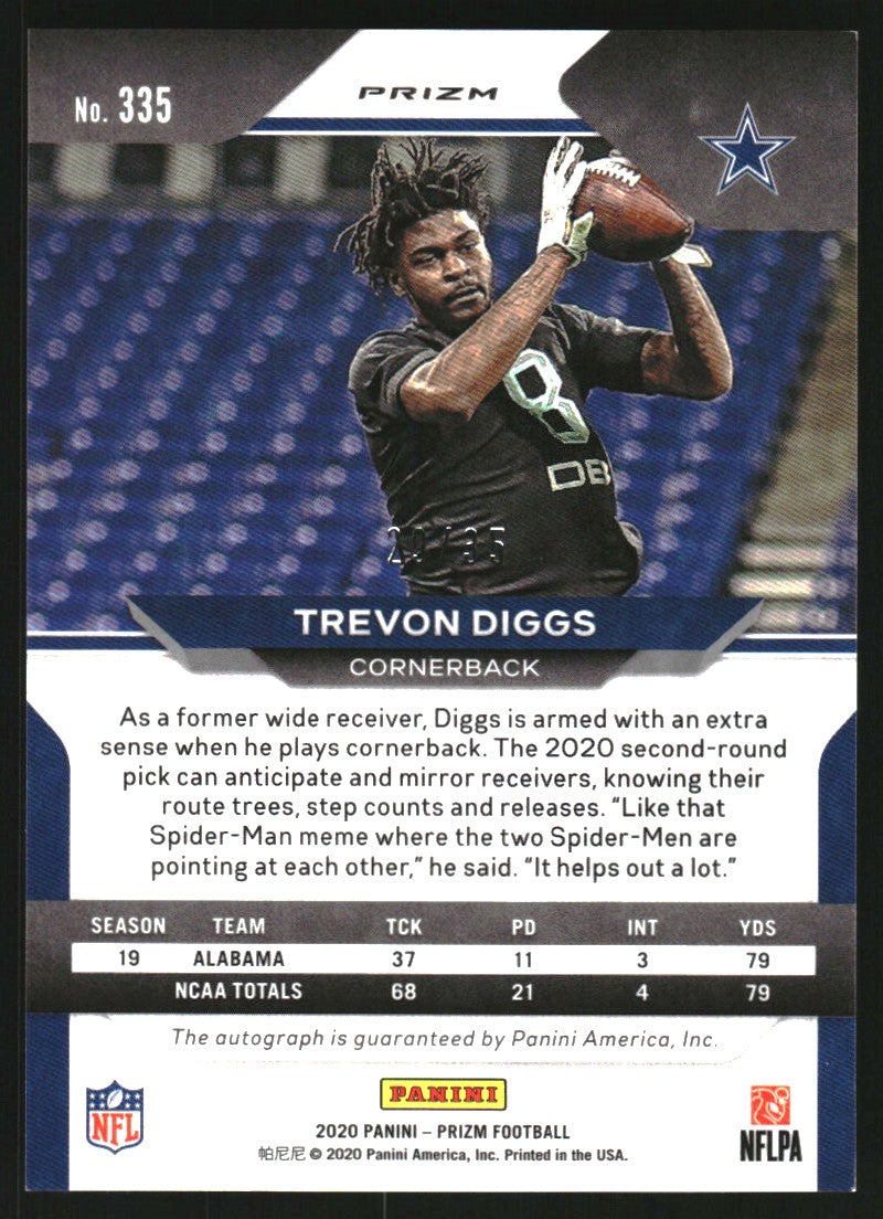 2020 Panini Prizm Rookie Autographs Prizms Red Shimmer Trevon Diggs RC Auto /35