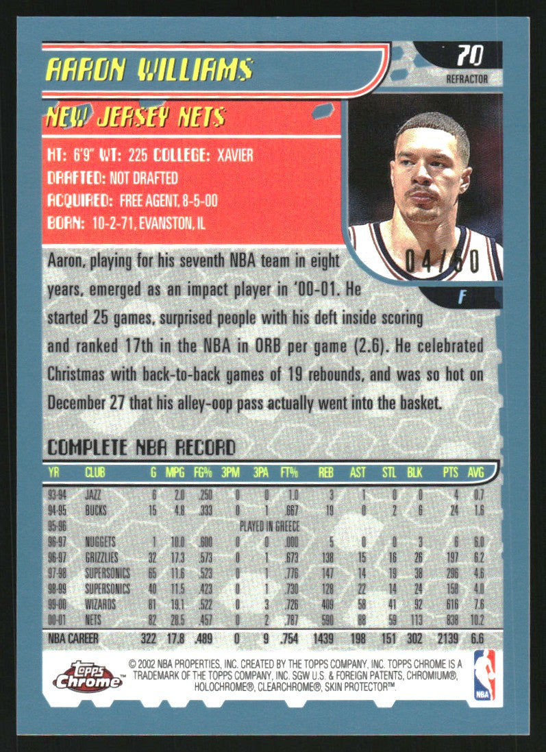 2001-02 Topps Chrome Refractors Black Border #70 Aaron Williams /50