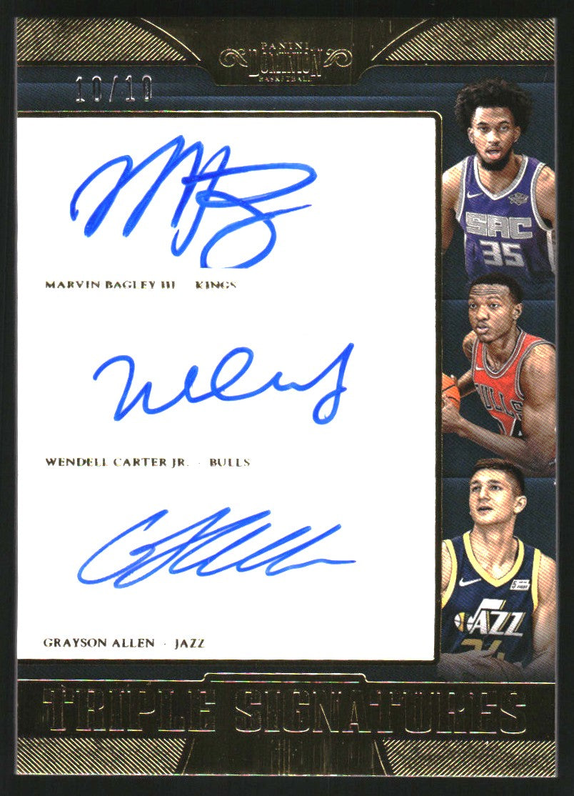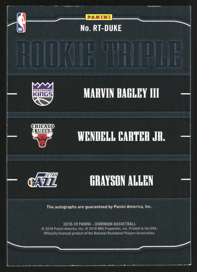 2018 Dominion Triple Gold Marvin Bagley Grayson Allen Wendell Carter RC Auto /10