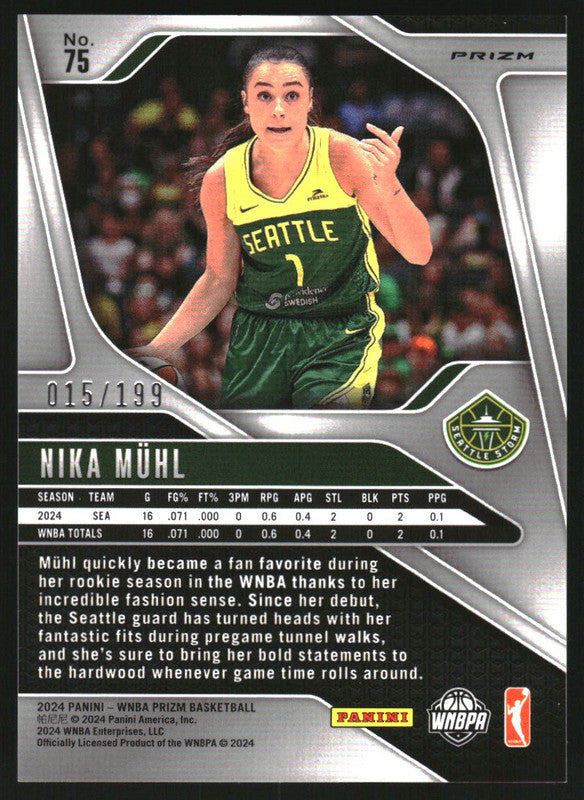2024 Panini Prizm WNBA Prizms Blue #75 Nika Muhl RC Rookie /199