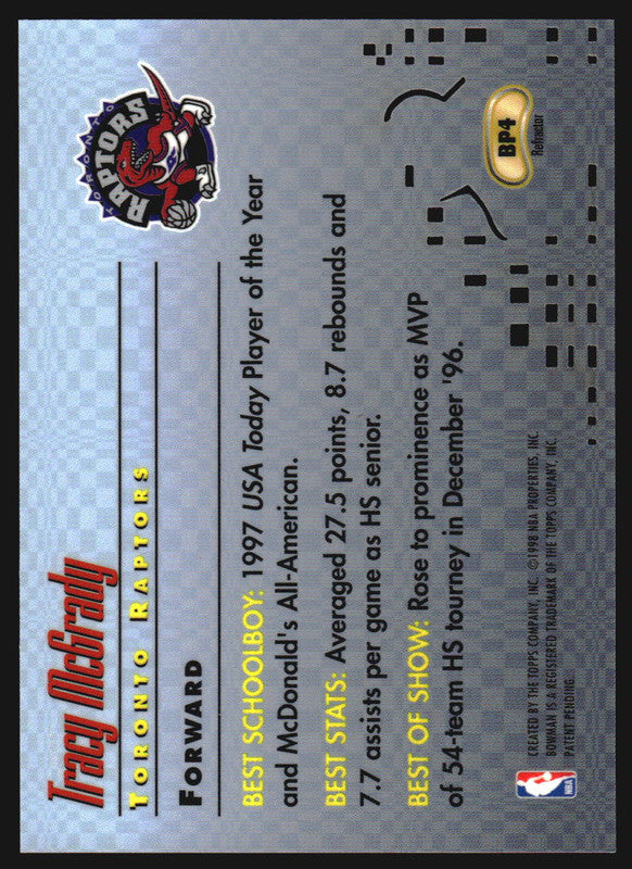 1997-98 Bowman's Best Picks Refractors #BP4 Tracy McGrady