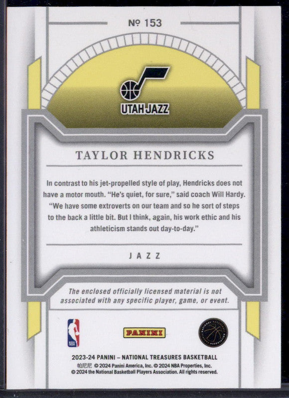 2023-24 Panini National Treasures Bronze #153 Taylor Hendricks RC /49
