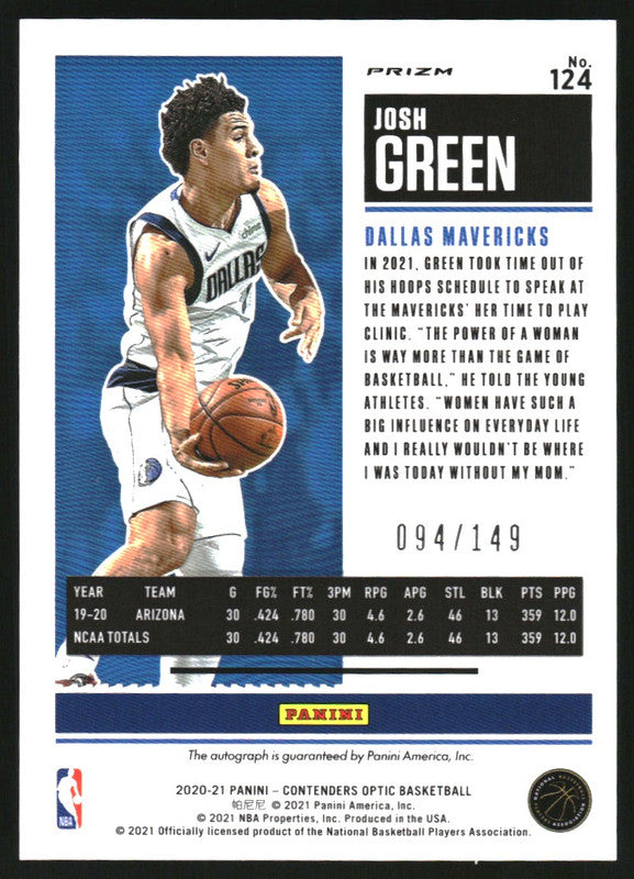 2020-21 Panini Contenders Optic Red #124 Josh Green RC Auto /149