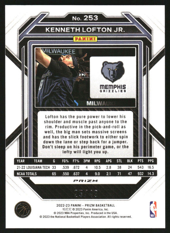 2022-23 Panini Prizm Prizms Choice Blue #253 Kenneth Lofton Jr. RC /49