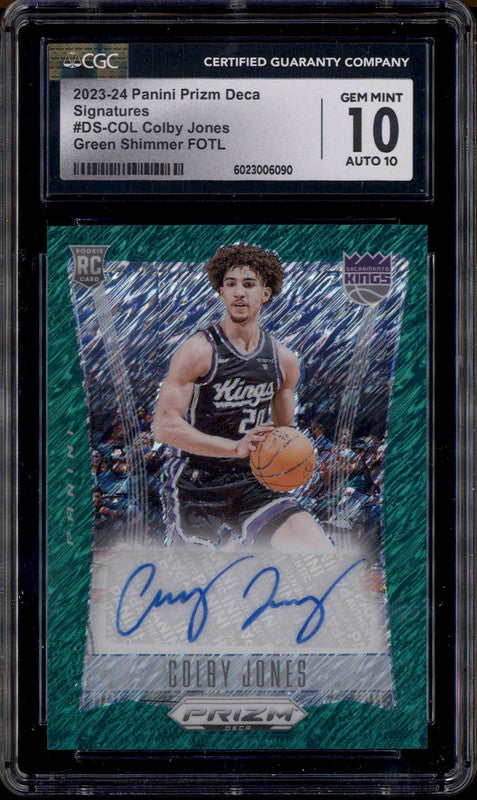 2023 Panini Prizm Deca Rookie Auto Green Shimmer FOTL Colby Jones RC /25 CGC 10