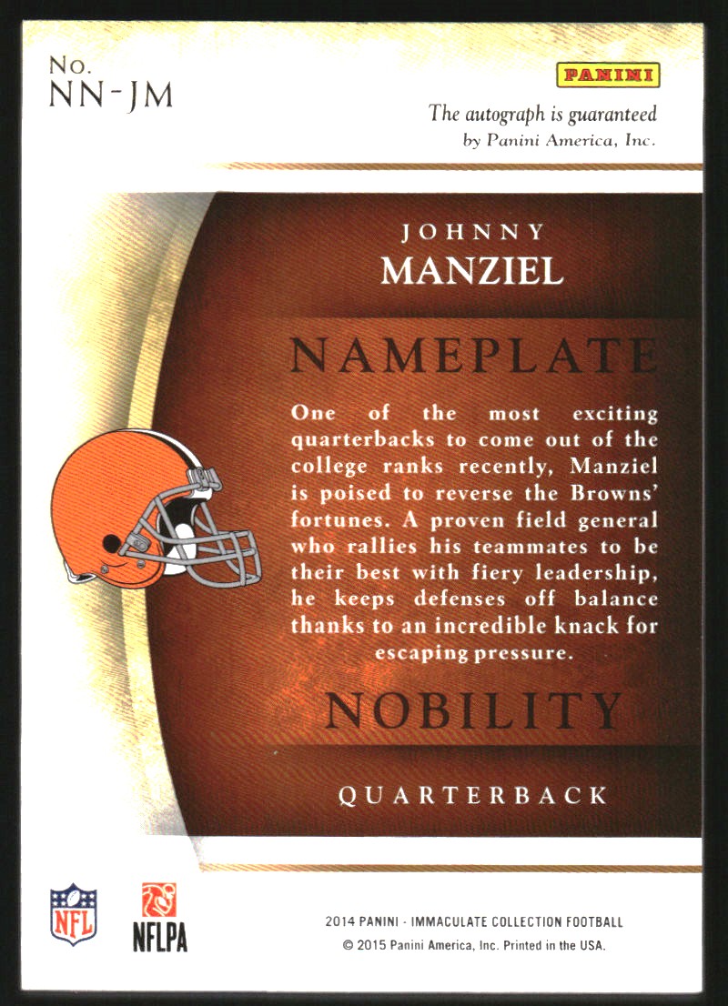 2014 Immaculate Collection Nameplate Nobility #NNJM Johnny Manziel RC /7