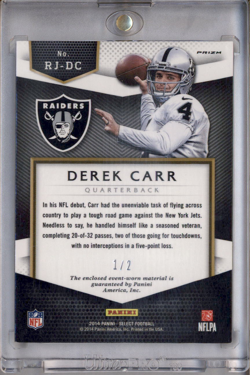 2014 Select Rookies Jersey Prizm Green Brand Logo Derek Carr RC /2