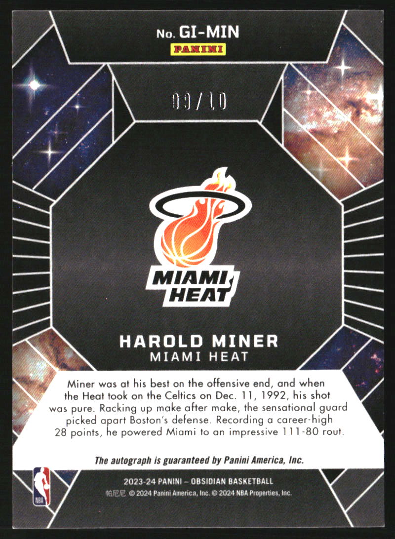 2023 Panini Obsidian Galaxy Ink Electric Etch Gold Flood Harold Miner Auto /10