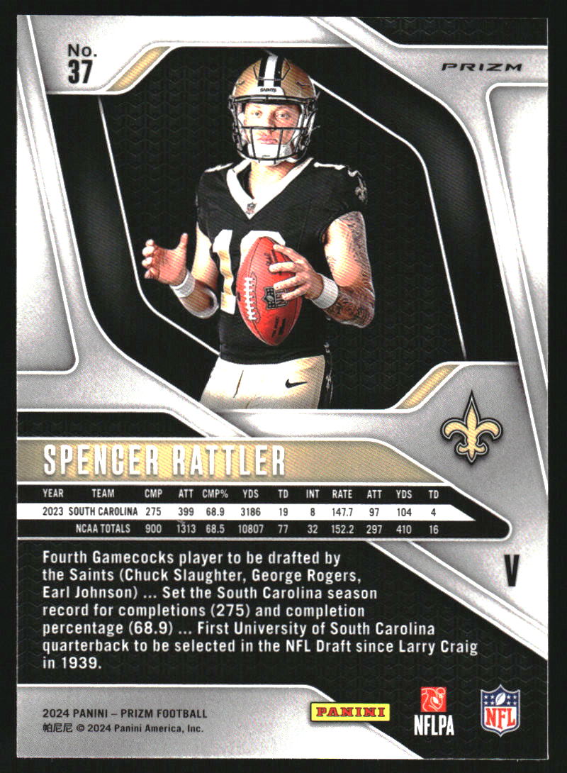 2024 Panini Prizm Rookie Variations Prizms Silver #37 Spencer Rattler RC Rookie